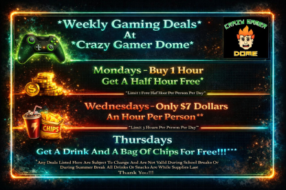 Thank you for visiting CrazyGamerDome.com. We are Long Island's premier video gaming location with an experience you won't find anywhere else.
